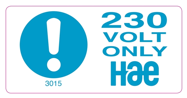 3015 Warning 230v only - Hire Association Europe